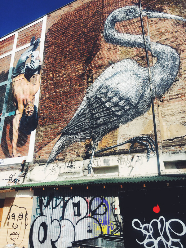 Some of the street art was very loud and commanding. This mural of the crane was even commissioned for the Olympics. Check out that detail, amazing.