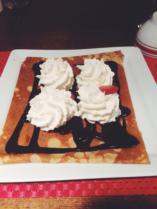 We finished off the day with a crepe dinner at a small town called Morgat. We started with savory buckwheat galettes and finished with white flour desert crepes. Mine had plenty of chocolate of course. God FRENCH FOOD IS SO GOOD. Better than English food…