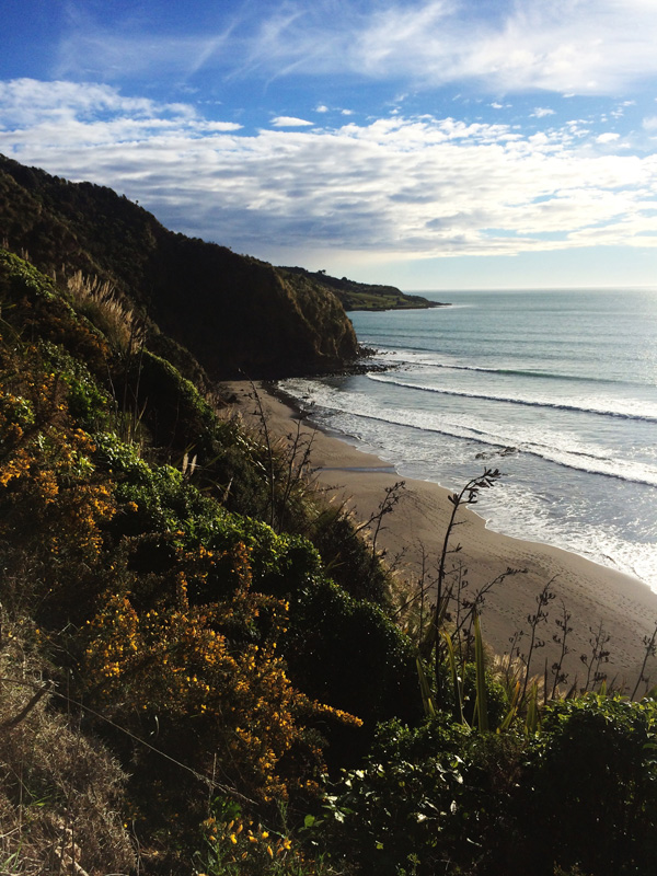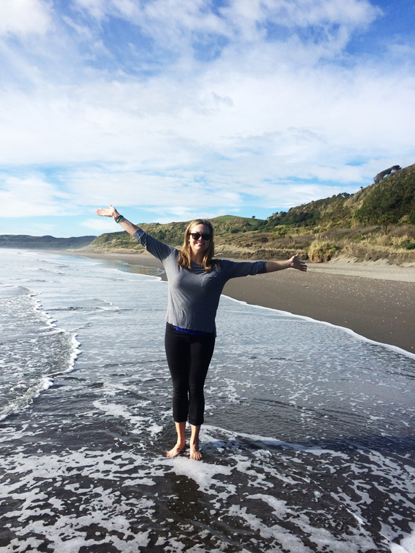 It was a magnificent and steep hike down to the beach and I was finally struck by the absolute beauty of New Zealand. This was the pure, wild landscape I had always imagined. THIS WAS IT. The water was positively chilly but the sun was effective at blasting us with heat. So we buried our toes in the sand and walked down the beach, reveling in the warmth.