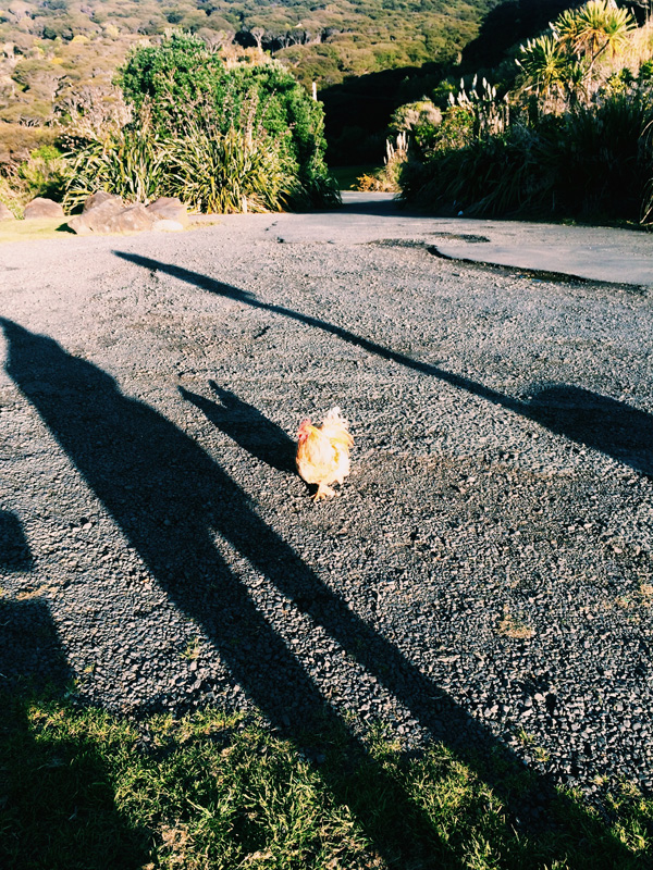 After a few hours, Linda, Gaelle and I decided to forgo the bus back to the lodge and walk back instead. That cliff was a bit more difficult to climb up but we eventually found the road which provided a blissful view over the coast. However we did have to dodge several cars speeding down the hill, including a van full of our fellow backpackers running into town for some beer. We did however see an actual chicken crossing the road which had us laughing our heads off while Linda tried to adopt the chicken and take it home as a pet when it began to follow us. I refused.
