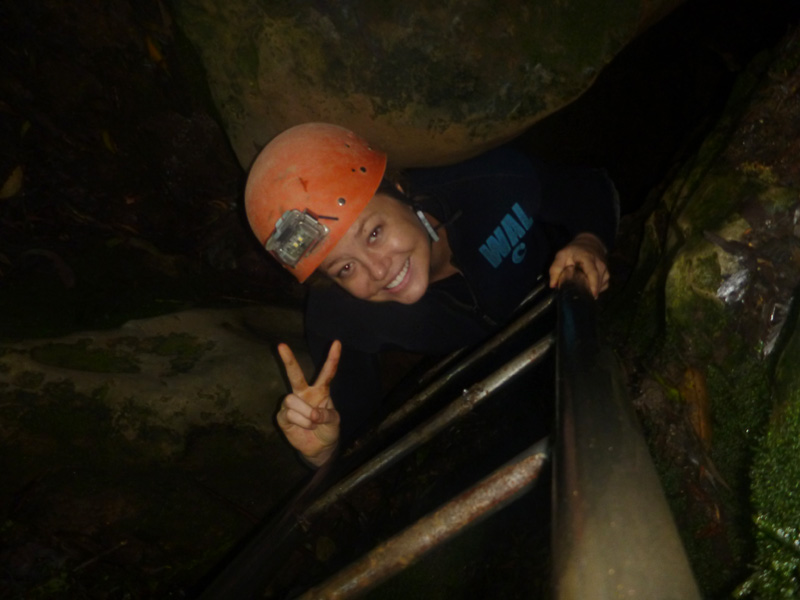 Once we got to the entrance to the caves I was actually shaking with fear. I don’t like being cold and wet, which is exactly what we were going to be for about 2 hours. What if I got claustrophobic and wanted to get out? Thankfully we didn’t have much time to consider our predicament before we were climbing down a slick ladder between the rocks and into the darkness. Peace out!