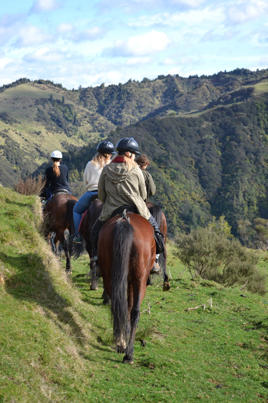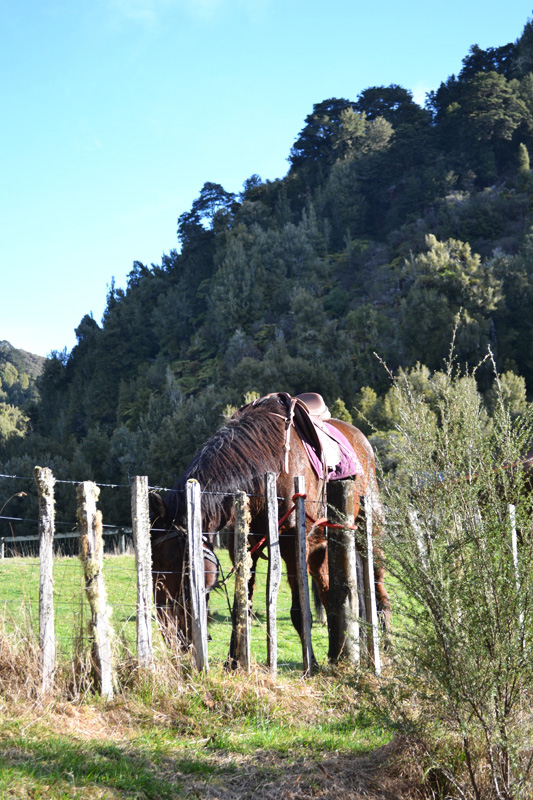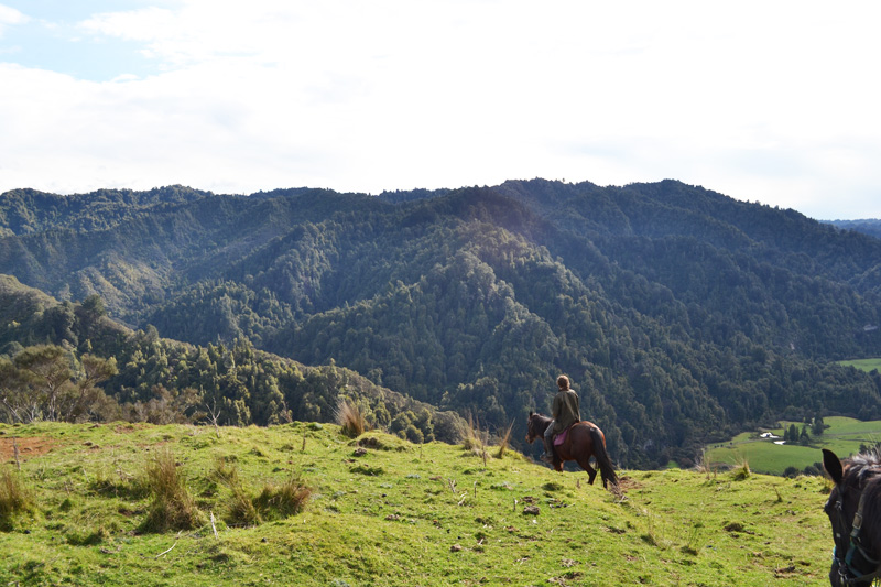Once I dragged myself out of bed, I set out with a few girls for an afternoon of horseback riding through the Whakahoro valley. After a steady and steep climb past orchards and grazing sheep, we traversed the tops of the hills with an incredible view of the blue-toned valley.